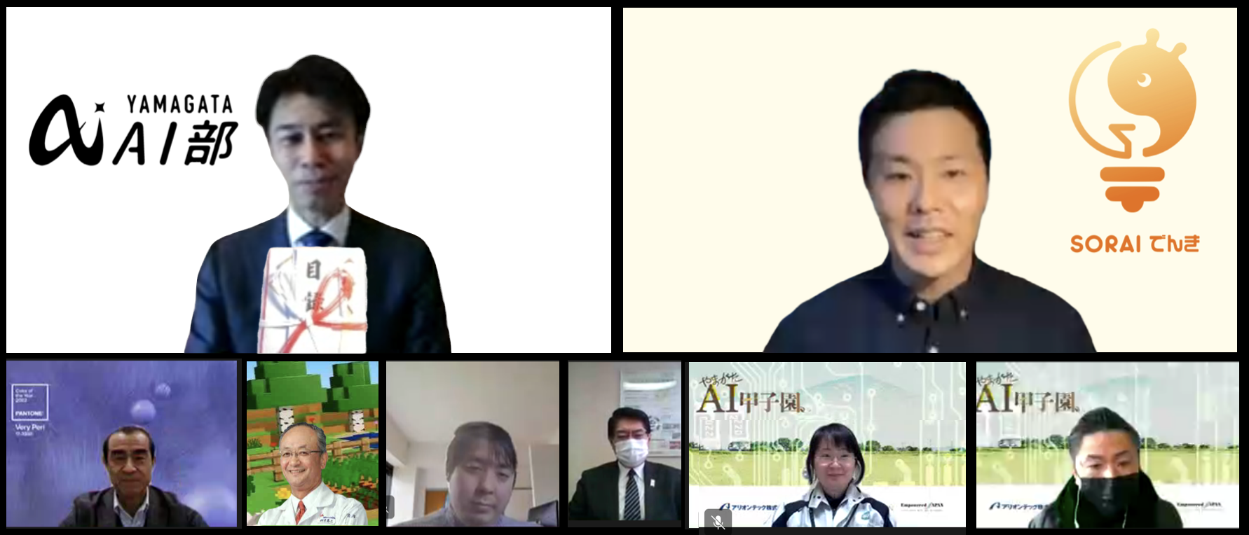 3月3日、AI部のオンラインでの定例会に、ヤマガタデザイン株式会社の山中代表が参加され、AI部の取り組みを応援するためにできた電力プラン、「ソライでんきAI部プラン」の売上の一部、約101万円をAI部の運営資金として寄付いただきました。