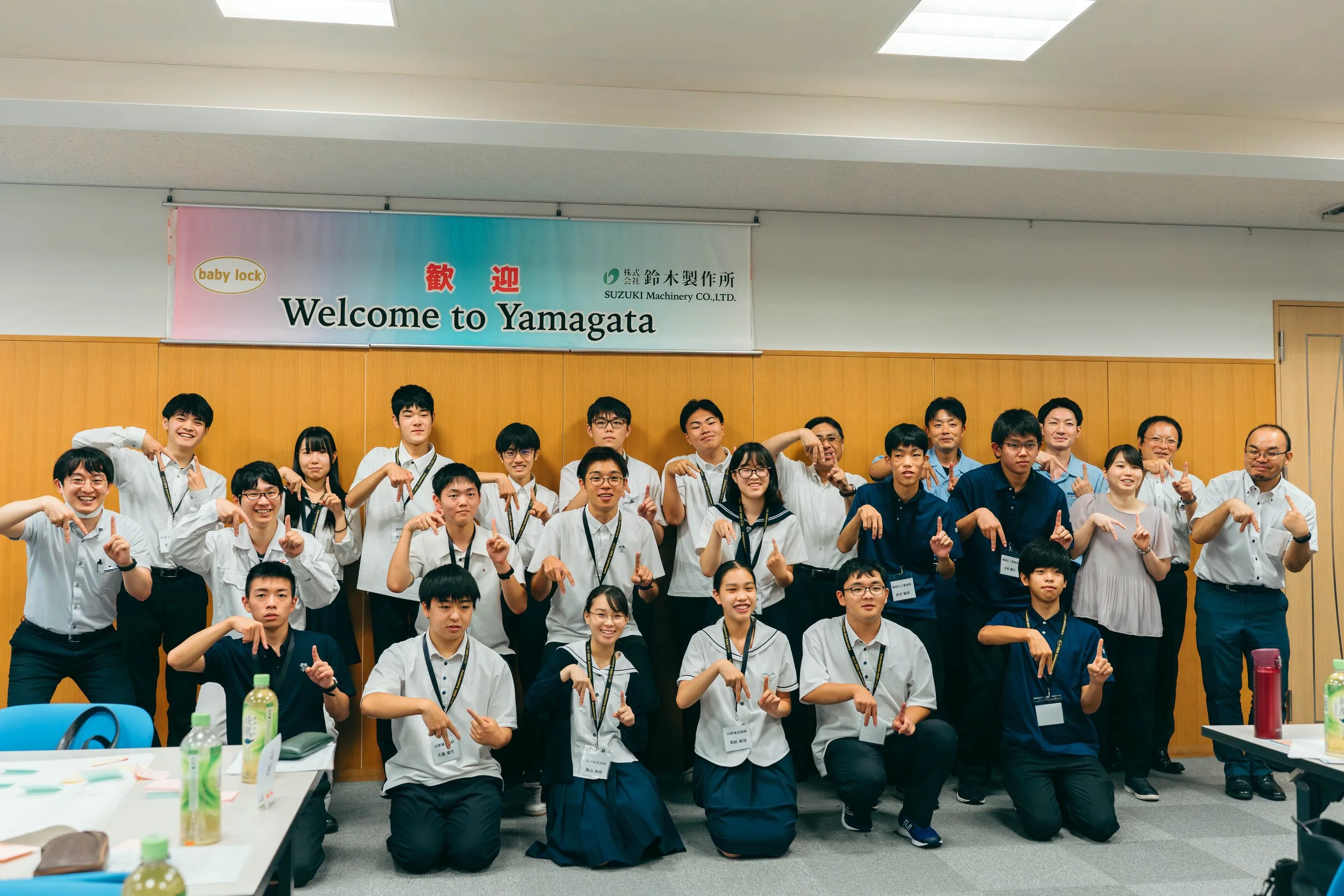 株式会社鈴木製作所は、「メイド・イン・ヤマガタ」を掲げ、世界100ヵ国にミシンと包装機を発信するグローバル企業です。生徒たちは、工場見学を通じて、ミシンの精密な組み立て工程や、高度な技術力が生み出す製品の数々を目の当たりにし、ものづくりの奥深さを実感しました。