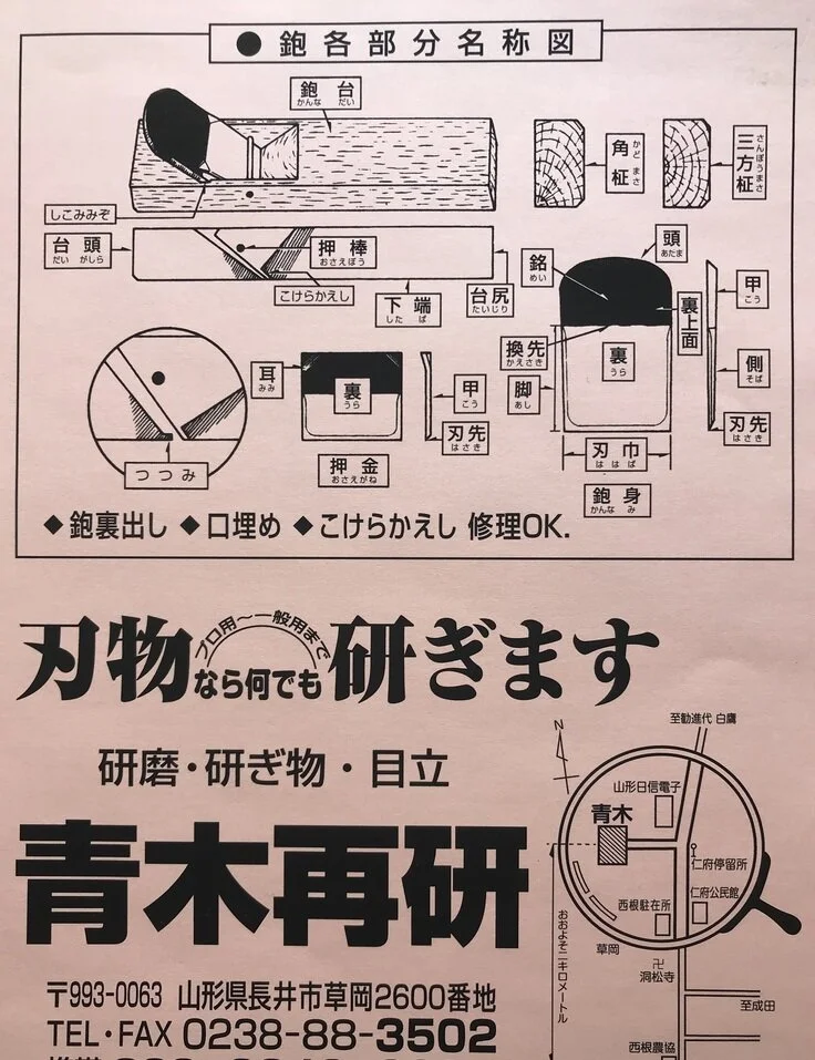 ◆カンナ各部の名前&青木再研さん地図