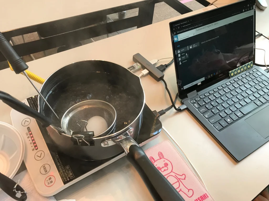 ゆでたまごの中身を切る前に当てるAIに参加者の皆さんは興味津々の様子。のみならず、その保護者の方のほうが面白そうにしている場面も見られました!