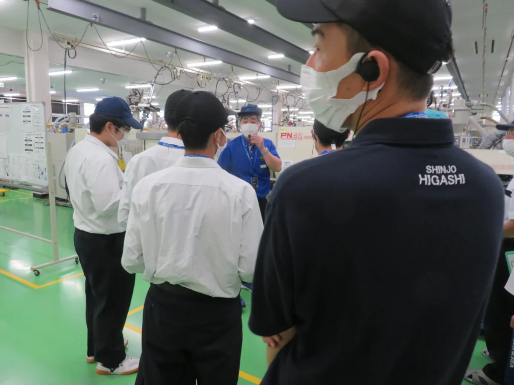当日は、工場内にある射出成形機などの設備について、スタッフの皆様にご案内いただきながら見学したあと、尾花沢市のものづくり企業数社のスタッフの方々も加わり、ディスカッションを行いました。