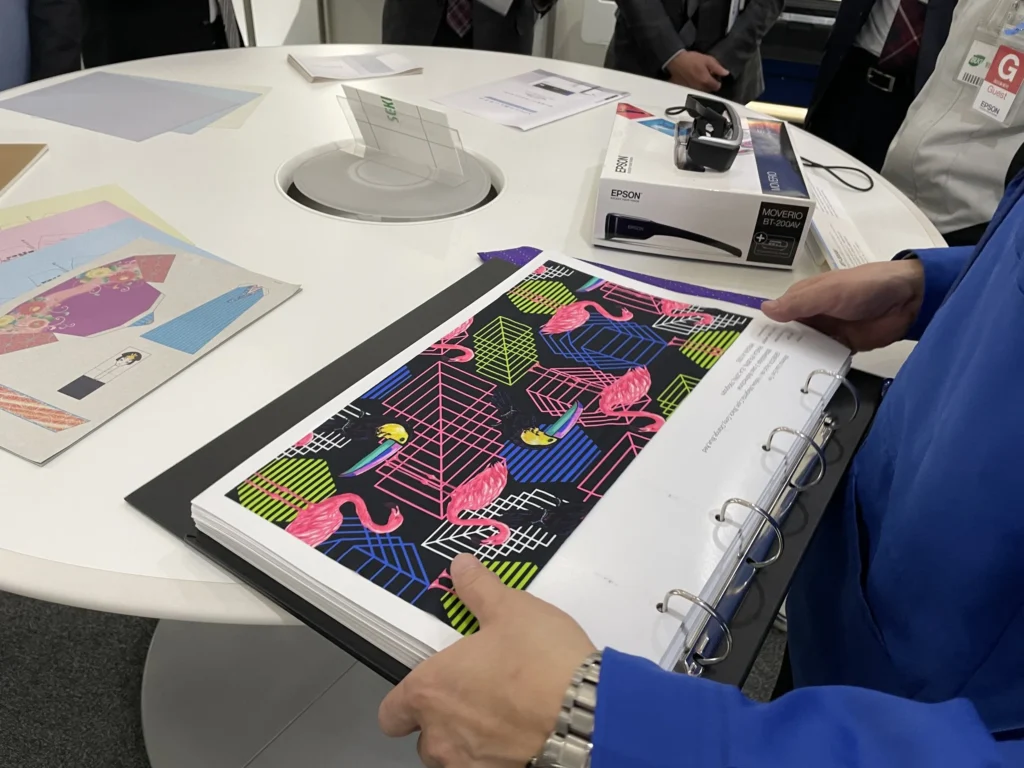 また、布に印刷できるプリンターで製造したネクタイや布地の実物も見学し、複雑な模様が非常に繊細に施されている様子に生徒たちが驚いていました。