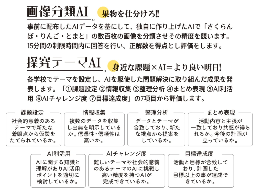 「競技テーマ 画像分類AI」と「探究テーマAI」の2種目の得点を合算し、最も得票点の高い高校。