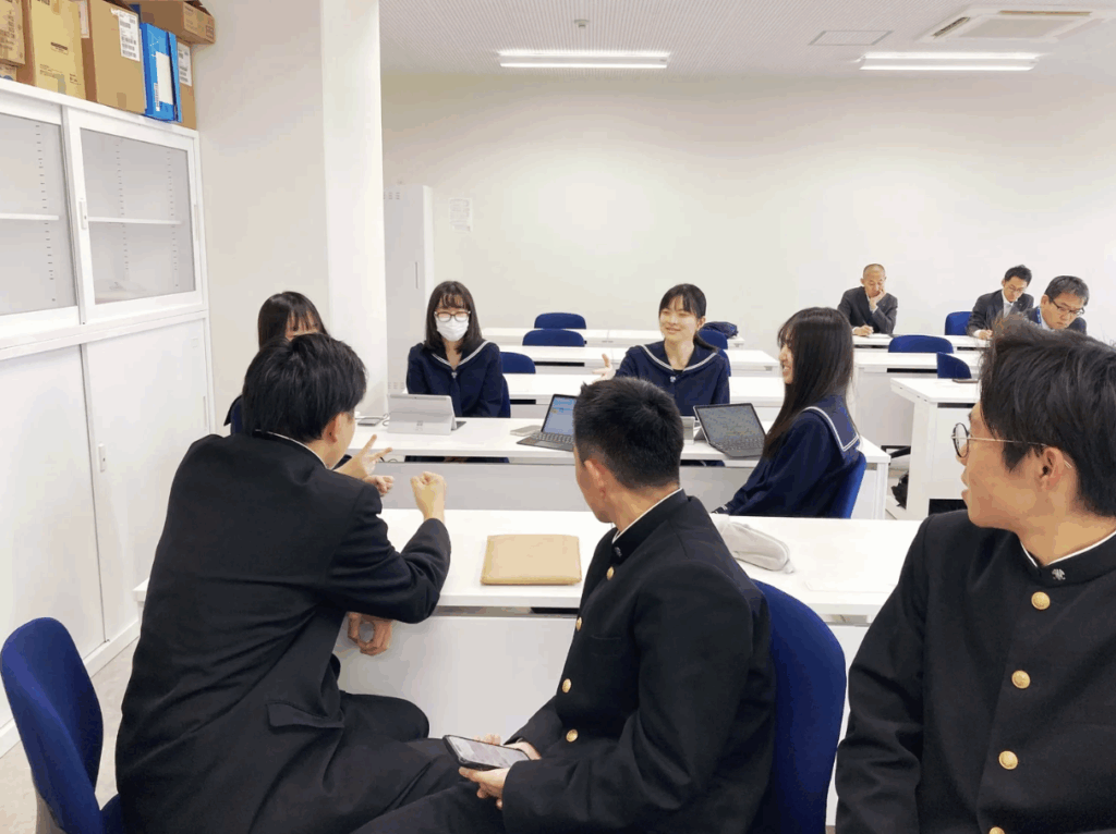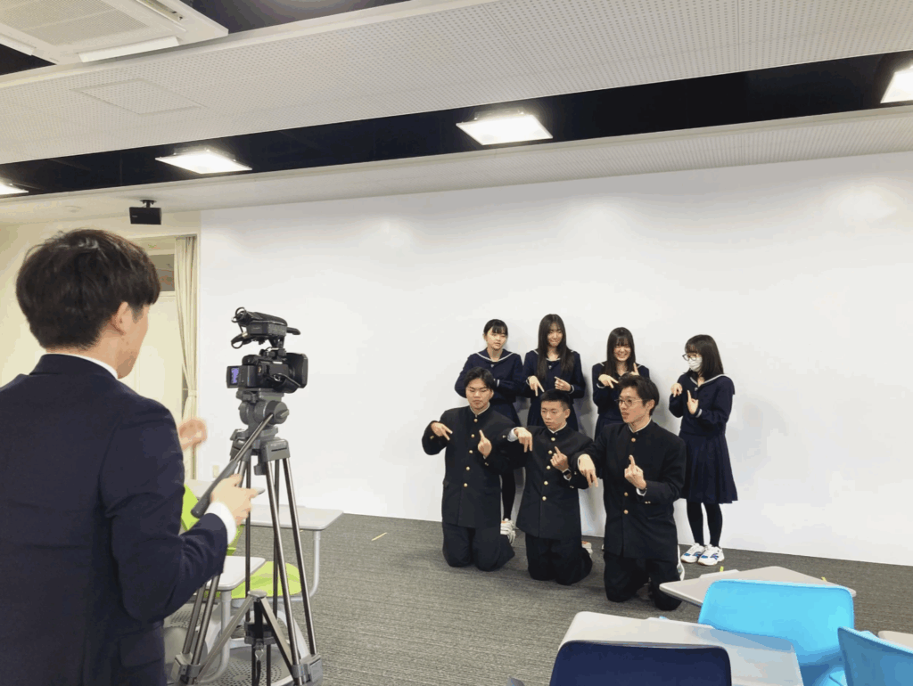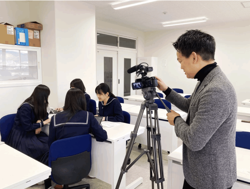 本日、やまがたAI部が、山形市立商業高校にてテレビ放送に向けた事前撮りを行いました!県庁担当者の方のご協力を得て、事務局メンバーで撮影に臨みました。
