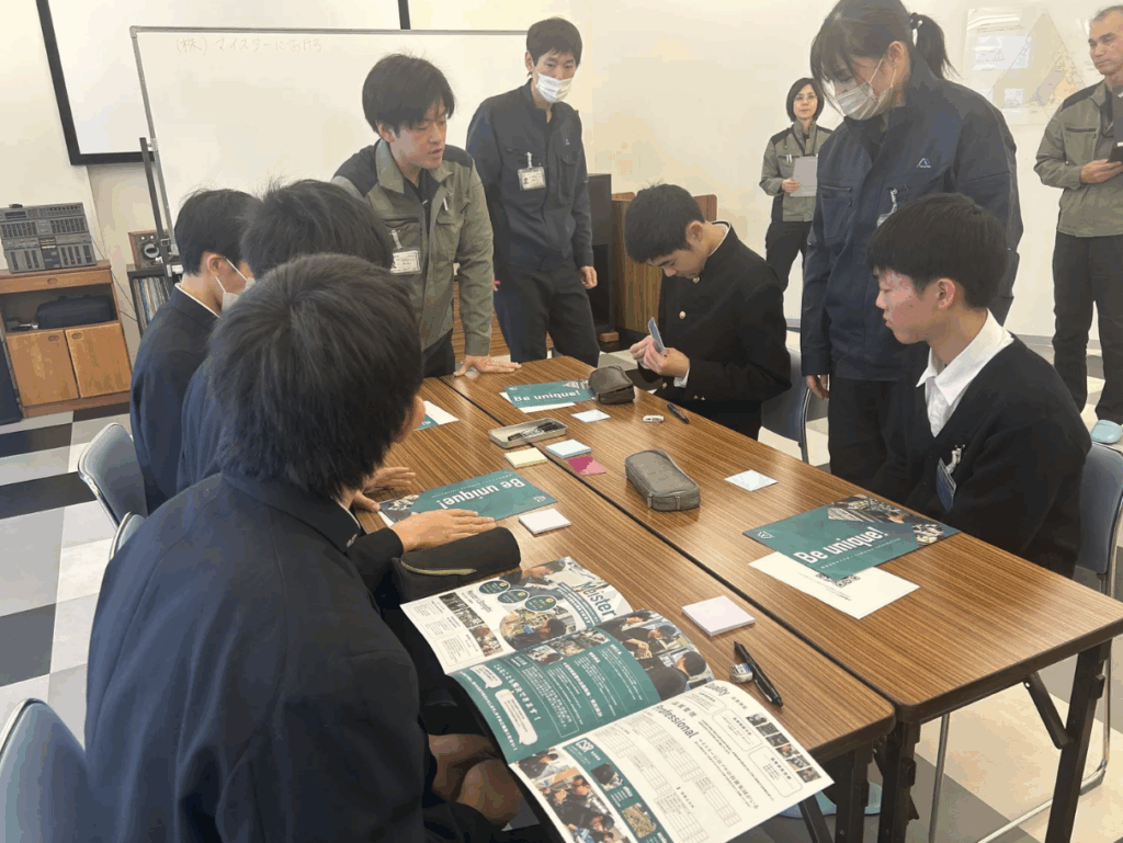 工場見学では、株式会社マイスターの先進的な生産技術や業務プロセスを学びました。その後のグループワークでは、生徒たちが「工場見学を受けての感想」を共有し、さらに「業務改善のアイディア」について検討しました。