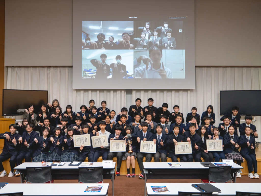 本大会は山形市立商業高等学校の輸誠ホールで開催され、オンライン配信も行われました。生徒たちの熱意あふれる発表に、会場もオンライン視聴者も大いに盛り上がりました。