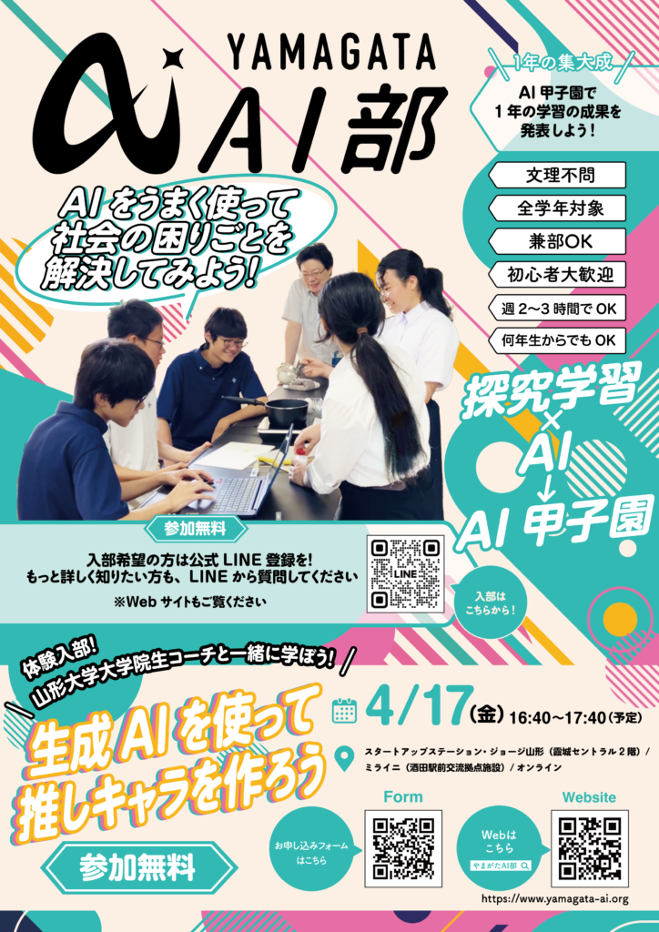 本講座は、やまがたAI部の体験入部として参加可能です。